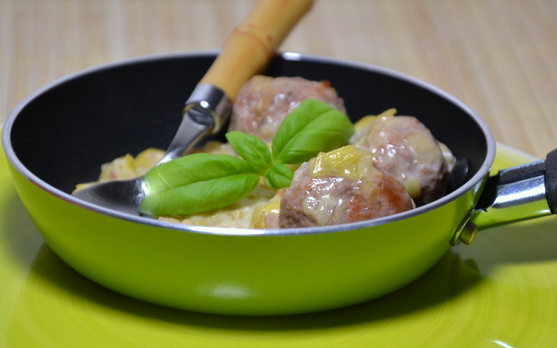 Fleischknöderl mit Lauchgemüse