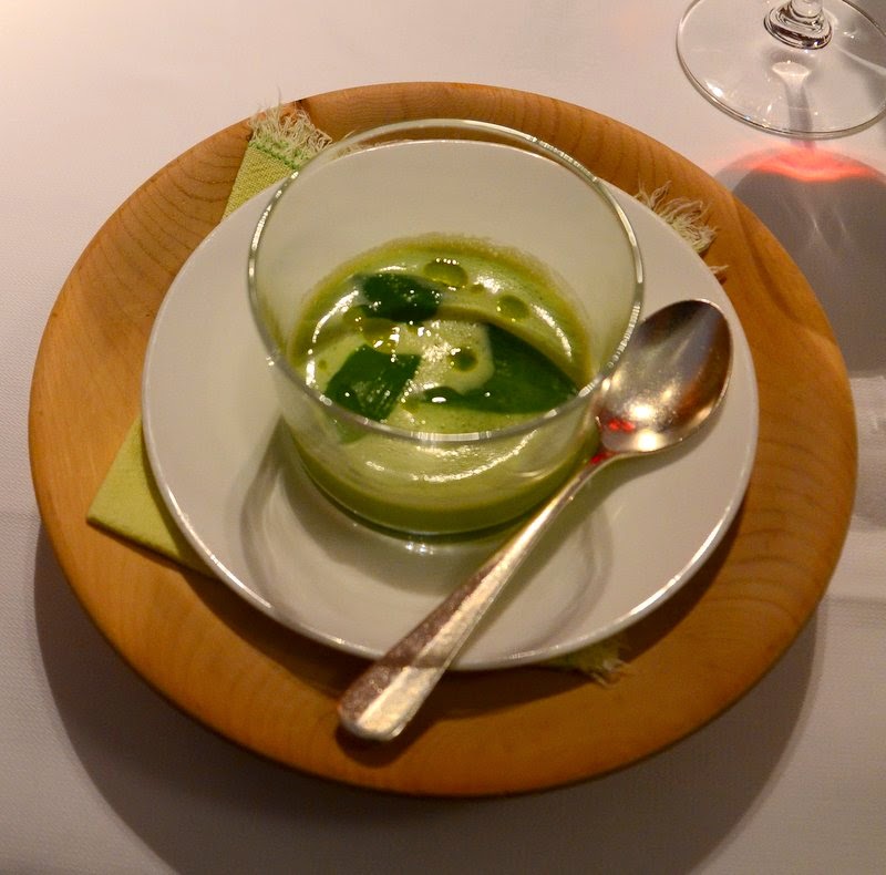 Sehr wertschätzend fand ich, dass man extra einen Teller mit vier verschiedenen Süppchen und Saucen für mich vorbereitet hatte. Geschmacklich einwandfrei war der marinierte Alpenlachs, der mit frischen Frühlingskräutern serviert wurde.